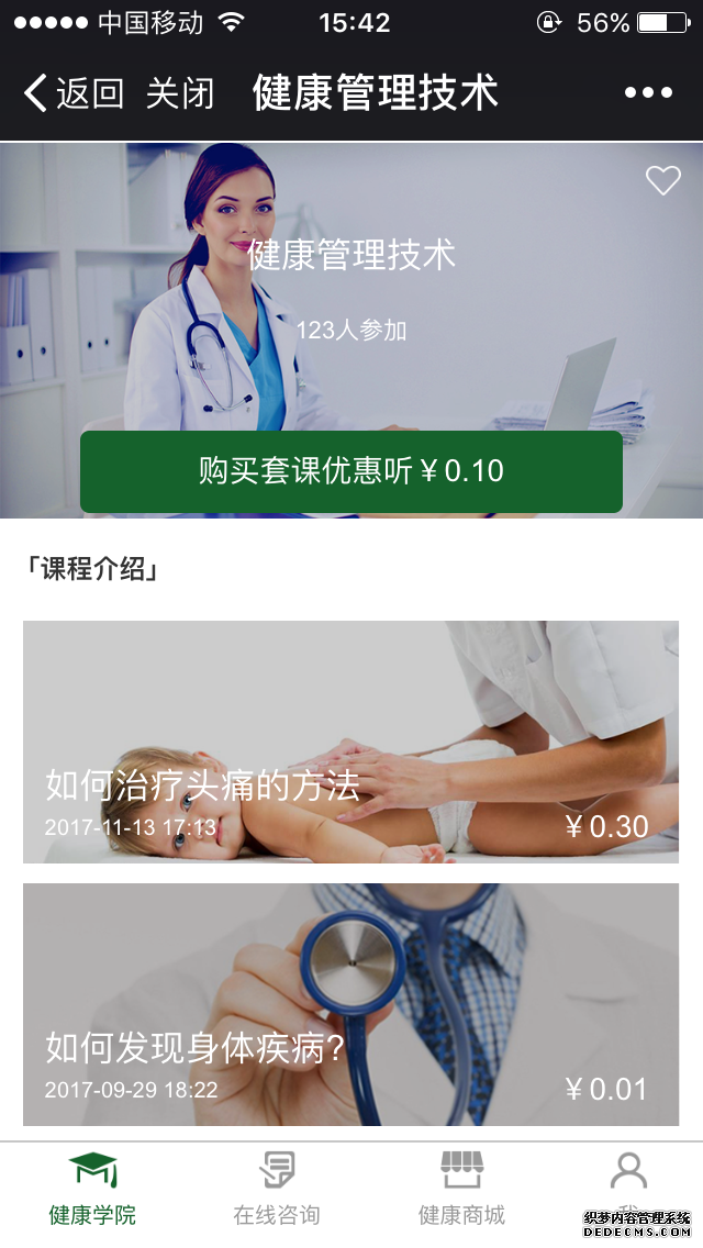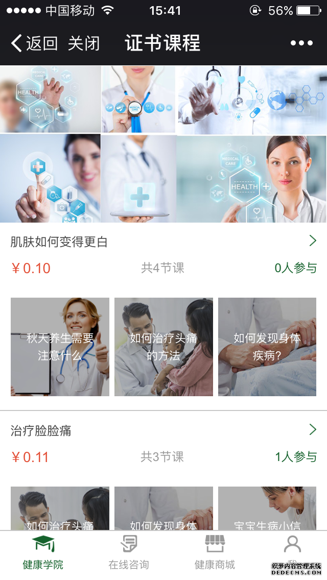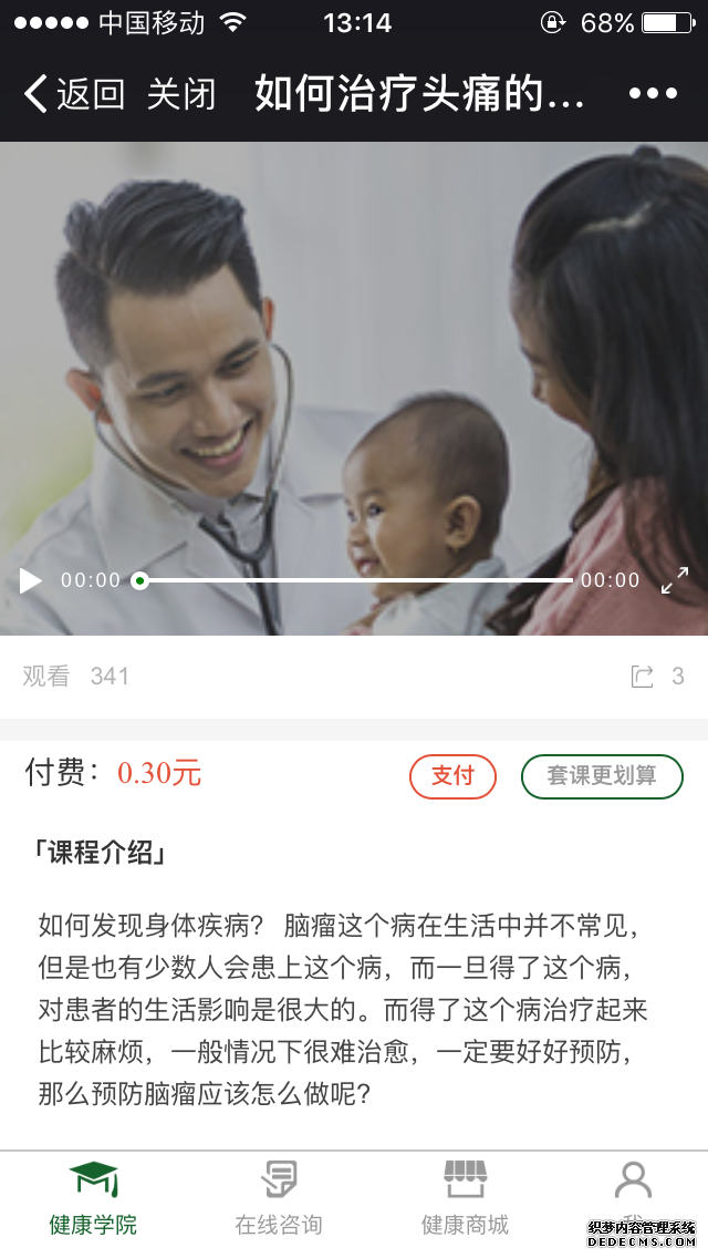 課程類別:按課程類別展示課程,課程類別可設(shè)置視頻課程、音頻課程、圖文課程、付費(fèi)課程等多種屬性。